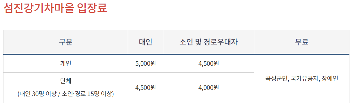 섬진강기차마을 안에 있기때문에 섬진강기차마을 입장료와 동일합니다.